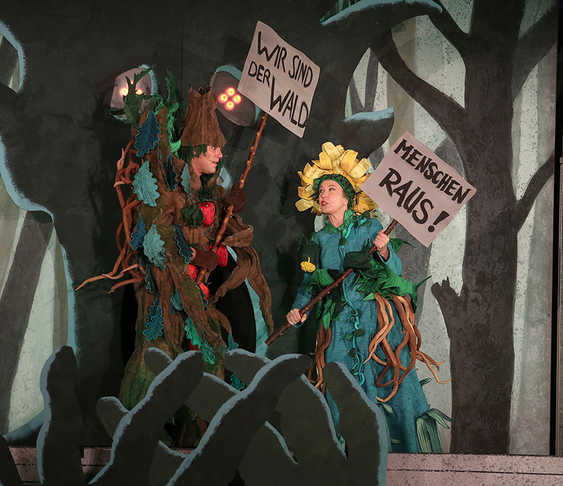 Das haben ihm zwei, auch charakterlich sehr verschiedene Königssöhne angetan, die ebenfalls in den Zauberhain gelangt sind. Dort suchen der „Bücherwurm“ und der „Abenteurer“ nach dem verlorenen Teil der Krone ihres Vaters. Denn einst wurden die rationale und die magische Welt von der „Krone der Eintracht“ zusammengehalten bis sie zerbrach und die Welt spaltete. Die Waldbewohner in ihren fantastischen Kostümen beschimpfen die menschlichen Eindringlinge als „dumme Glattgesichter“ und protestieren: „Wir sind der Wald!“ Aber einige Geschöpfe des Gehölzes wollen die Begegnung mit den Fremden statt sie zu vertreiben.