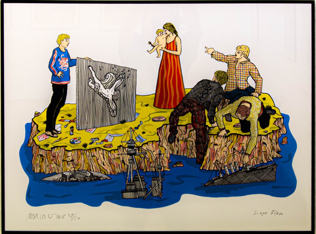 Moritz Götze präsentiert in seiner Studioausstellung in der Kunststation, Grafiken unter dem Titel „Im Schatten der Ereignisse“. Seine Farbdrucke sind nicht Teil der parallel eröffneten aktuellen Frühjahrsschau, in der Kunstschaffende nach „Antworten auf die documenta fifteen“ suchen. Doch deren Auseinandersetzung mit der momentan heftig gehypten Ideologie der kulturellen Aneignung, zieht sich ebenfalls durch Götzes Werk: