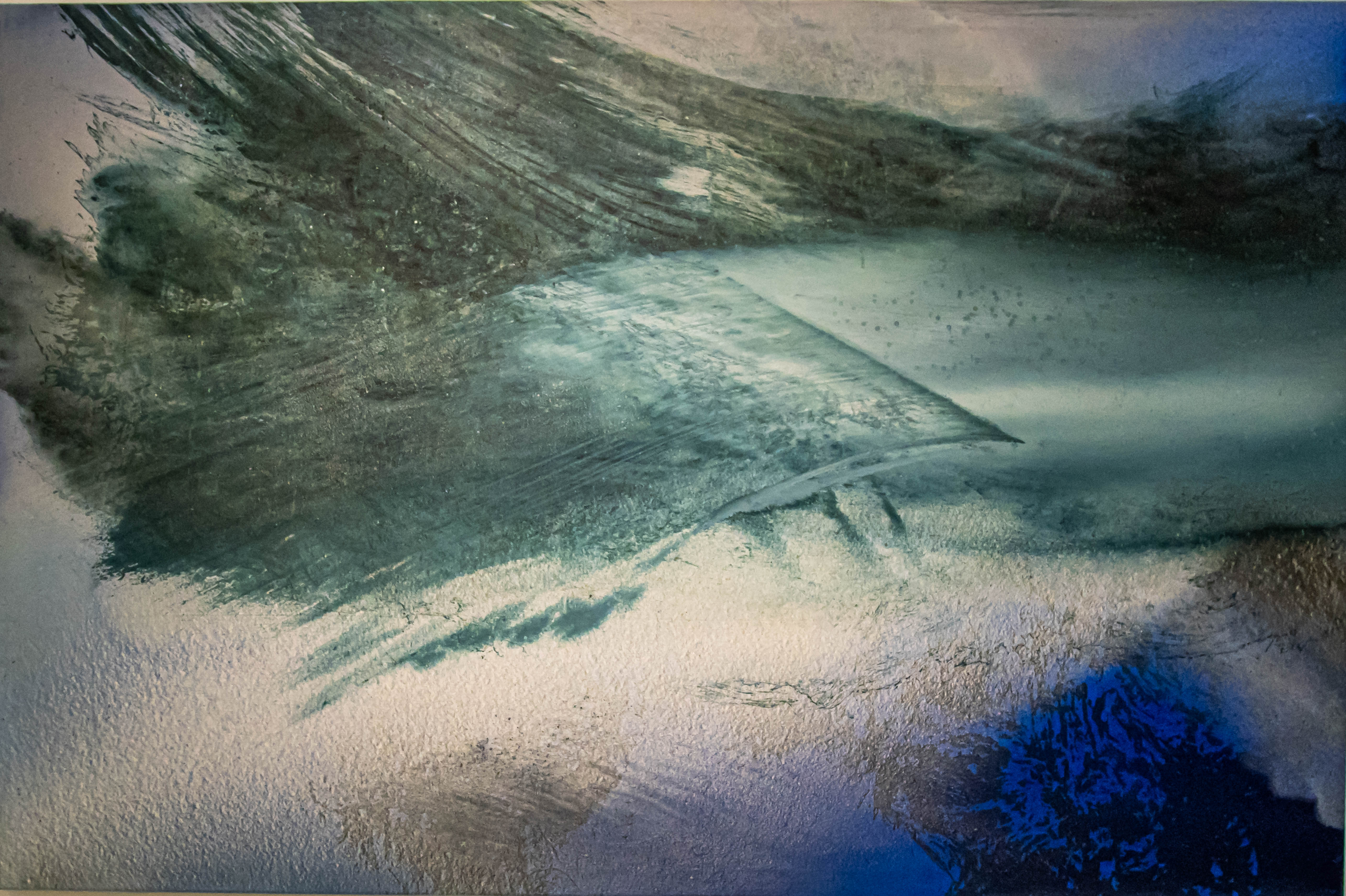 Distlers Arbeiten bilden nichts ab, sind ungegenständlich, dennoch muten viele an wie unwirtliche wilde Landschaften, vereiste weiße Felsen, schroffe Gebirge, stürmische Meere. Da lässt auch vielleicht der romantische Maler William Turner grüßen. Doch die Künstlerin malt nicht nach der Natur.