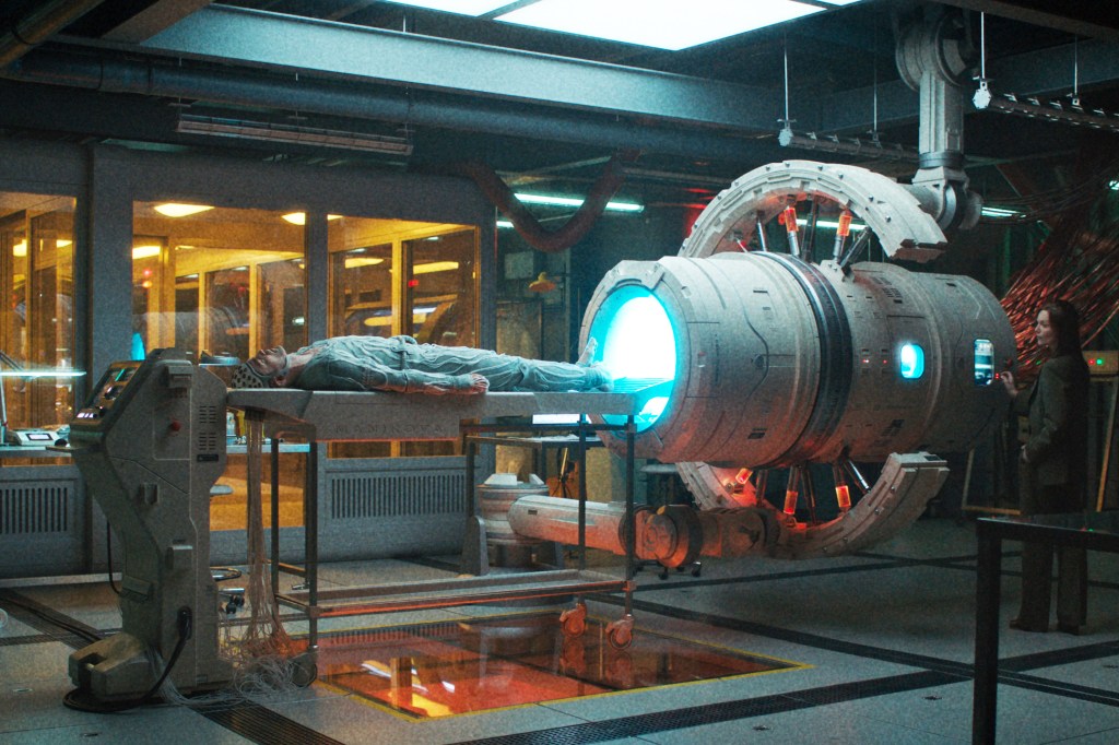 In weiteren Rückblenden erfahren wir von Mickys ersten Toden, dann von seiner heimlichen Liebschaft mit der Sicherheitsfrau Nasha (Naomi Ackie), die in der Hierarchie weit, weit über ihm steht. Aber immerhin wird er ja von Robert Pattinson verkörpert. Deshalb ist Nasha auch sehr erfreut als die beiden Mickeys – der alte, eher zärtliche, und der neue, eher draufgängerische – ihr plötzlich gegenüberstehen. Sofort schleppt sie beide in ihre Kabine…