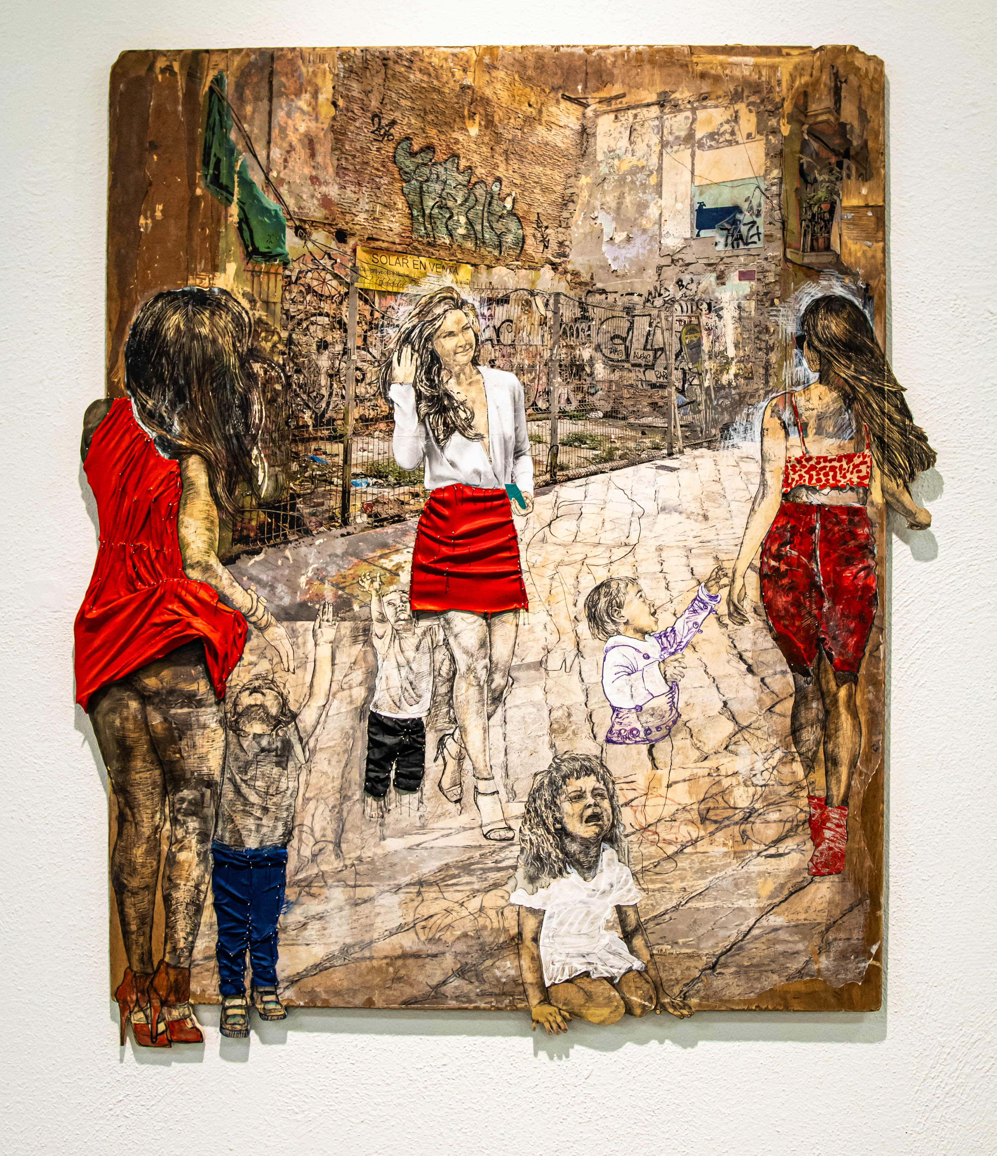 Die wesentlich kleinere, zweite Werkgruppe der Künstlerin ist in ihrer gesellschaftlichen Kritik direkter. Collagierte und gemalte Kinder werden in Budapest – wie in Computerspielen – mit hölzernen Waffen zu Kindersoldaten. Oder grell dargestellte Frauen, deren Abbildungen die Titel „Priorisation“ (engl. Prioritäten setzen) tragen, erscheinen an öden urbanen Orten: Sie vernachlässigen ihre schreienden Kinder und scheinen auf der Suche nach einem besseren Leben. Aber kann es ein richtiges Leben im falschen geben – fragte bereits der Philosoph Theodor W. Adorno. Und mit dieser Frage entlässt uns Gaál dann auch in unsere Wirklichkeit.
