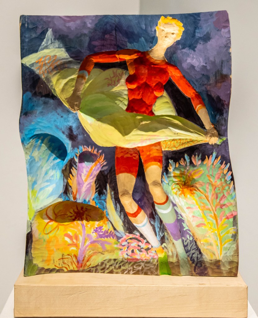 Eigenartige weibliche Holzwesen, eine heißt „Grazie“, zeigen sich nur leicht bekleidet oder nackt aufeinander stehend. Die teils bemalten Skulpturen aus Linden- oder Ahornholz sind ineinander verdreht und verschlungen, manche Körperteile sogar nach innen gewölbt. Als Installation irritiert diese Frauengruppe, doch durch ihre Gestaltung – als Konkav-Tiefenreliefs – wird immense Lebensfreude und Bewegung spürbar.