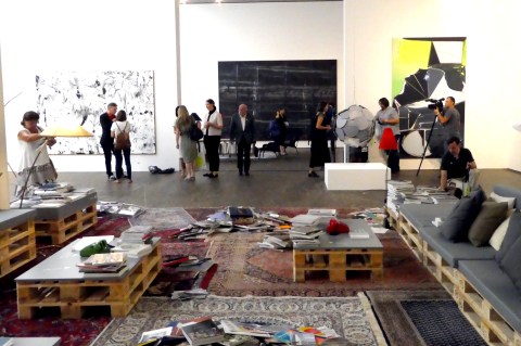 Während sich die leer geräumte, riesige Wartehalle des ehemaligen Bahnhofs mit Nebel füllt, fläzen sich betont cool und lässig eine Menge junger Leute auf großen Podesten links und rechts der Treppe zum Saal. Decken, Schlafsäcke, verstreute Klamotten und Essensreste suggerieren, hier wird Tag und Nacht für die Kunst gelebt. Seltsame Klänge und Geräusche füllen den dunstigen Raum. Mutige Zuschauer verschwinden bereits im Nebelschleier, nach und nach kommen auch Akteure dazu.