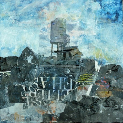 In ihrer Studioausstellung „Zur schönen Aussicht“ in der Kunststation Kleinsassen (Rhön) präsentiert Ute Bauer-Schröter einzigartige collagierte und übermalte Landschaftsbilder.