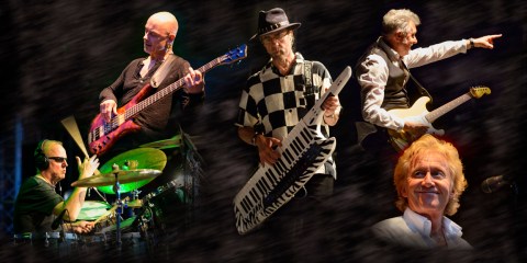 Beim nächsten Stück kommt der Keyboarder, der die Gruppe vor 45 Jahren gründete und ihm seinen Namen gab, mit einem Umhängeklavier (korrekt dem „Mini Moog“) nach vorn. Der coole, hoch aufgeschossene Sechsundsiebzigjährige liefert sich mit dem Gitarristen Mick Rogers, ebenfalls Mitgründer der Band, gnadenlose instrumentale Duelle. Dann wieder verschmelzen die Klänge der Spielgeräte im Duett, so dass sie sich kaum noch unterscheiden lassen.