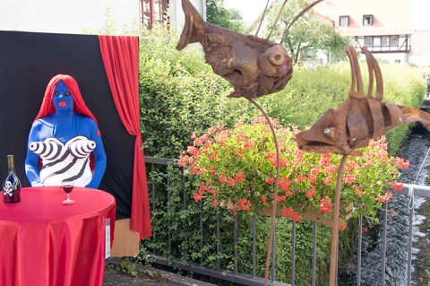 Die Skulpturen entführen die Betrachter in merkwürdige Welten: Eine männliche Figur hockt einsam auf der Spitze eines langgezogenen, schiffsartigen Gebildes („The River“). Über eine Mauer mit Rädern reiten drei Männer auf Pferden den „Schmalen Pfad“. Einer sitzt als „Easy Rider“ auf dem Rand eines maschinenartigen Hauses mit zwei Rädern. Oft halten die Menschen Balancierstangen, wohl um an diesen seltsamen Orten nicht aus dem Gleichgewicht zu geraten.
