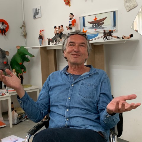 „Das ist oft die pure Lust“, meint März über das Kneten seiner kleinen Tonfiguren, die zum Leben erwachen, wenn er sie nach dem Brennen bemalt. Dann sagt er einer auch schon mal: „Du bist aber ein Schöner!“ Er braucht viele dieser Gebilde, um sie in Gruppen auszustellen, mit ihnen Geschichten zu erzählen oder sie auf Reisen mitzunehmen. Manchmal illustrieren sie bereits aufgeschriebene Erzählungen, oft tauchen sie seltsam verfremdet – wie lebensgroß – in seinen Reisefotos oder Videoclips auf.