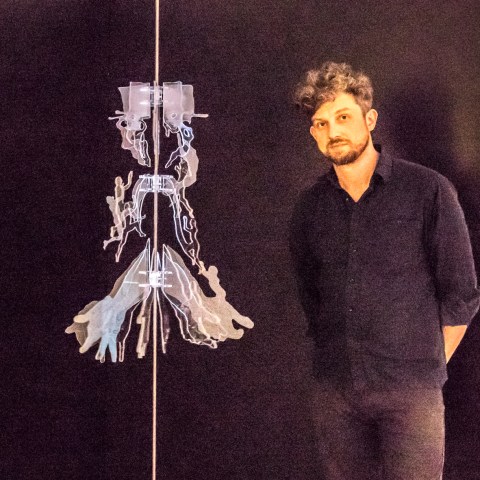Bereits der Aufgang zu den Galerieräumen überrascht durch viele gelbe, unregelmäßig angeordnete Klebestreifen. Es ist eine Komposition, die im Dunkeln mit Schwarzlicht leuchtet, doch auch tagsüber irritiert sie die Wahrnehmung der Besucher und stimmt sie auf die Schau ein – siehe Foto oben. Denn etliche der ausgestellten Beiträge sind nicht eindeutig, sie provozieren eigene Assoziationen und entführen in neue Wirklichkeiten.