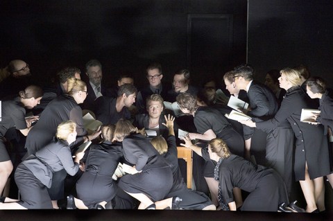 Freie, häufig rätselhafte Bilder ziehen sich durch alle Szenen, bis das Werk eineinhalb Stunden später mit dem gesamten, fast nackt wirkenden Ensemble endet.