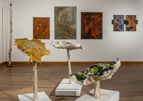 In der zweiten der drei aktuellen Herbstausstellungen in der Kunststation Kleinsassen/Rhön präsentiert Hannelore Weitbrecht ihre sinnlichen Objekte. Staunend betrachtet man feine Gebilde aus Pergament, Draht und Naturfunden, die wie eigenartige Traumwesen wirken oder bizarre Gestalten aus erdachten Landschaften. Pustet man einige an, scheinen sie sogar zu atmen.
